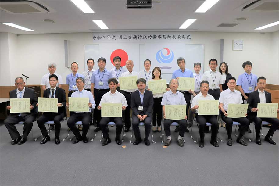 令和7年度国交省通行政功労事務所表彰式にて『優良施工業者(工事部門)』として表彰されました。