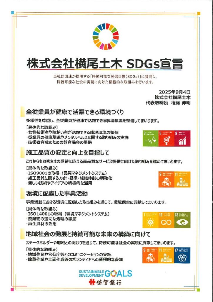 株式会社 横尾土木は国連が提唱する「持続可能な開発目標(SDGs)」に賛同し、